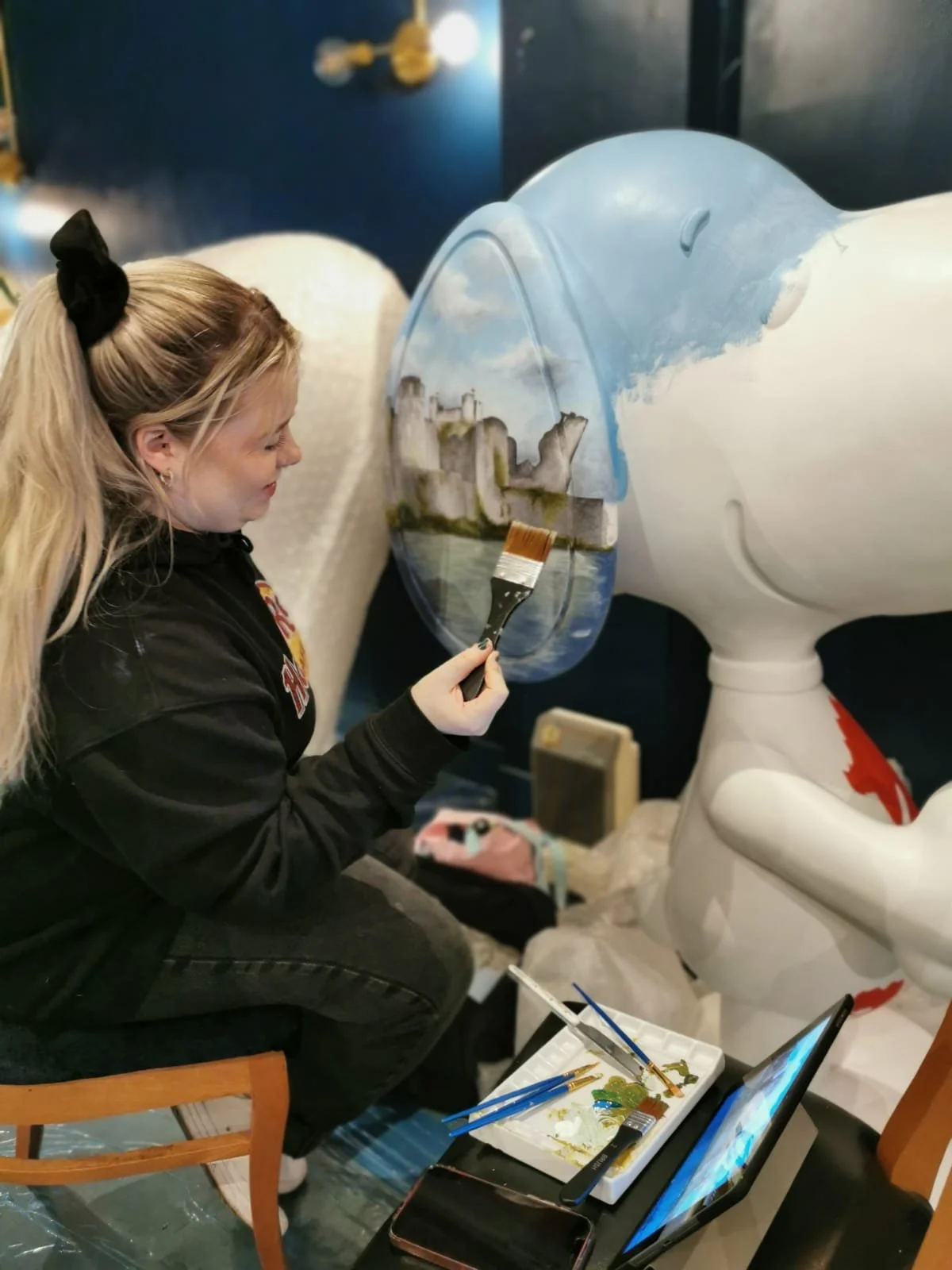 My design was commissioned by Confused.com and I had the honours of painting my design onto a blank Snoopy sculpture ready for the launch of the trail. My design included iconic Welsh locations that I have visited, with the aim to celebrate the beauty in Wales’ history and culture. “Gwlad, Gwlad” which comes directly from the Welsh national anthem, aptly translates to “Country, Country” and nods to passionate Welsh pride.